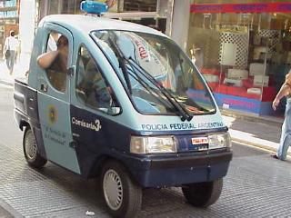 この繁華街を走る自動車がいます、ミニパトカー。本当に小さくて可愛い感じの乗り物です。