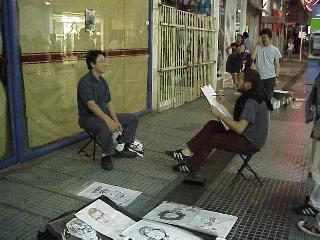 その他では芸術系の芸もあります。定番の「似顔絵書き」、40分かけて丁寧な仕事をしてくれて15ペソ、その他ではスプレーのペインティングなどの人もいました。