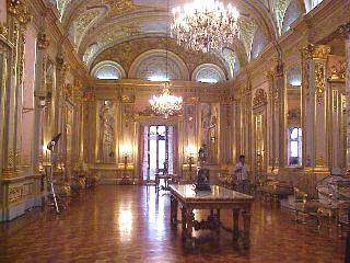 その後、内部を見学、大統領が使う食堂、プレスとの懇談に使う場所など現在藤森大統領が使用している場所を見て廻りました。中でも一番豪華なのがこの金色の広間でしょう。