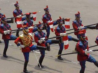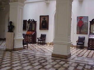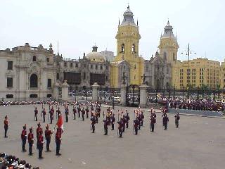 政庁は文字通り政府・大統領府です。副王領の時代からペルー統治の場所として君臨してきたわけです。現在はご存知、藤森大統領が家主で、この場所が現在もペルー政治の中心として機能しています。中に入るには特別な許可が必要であり、今回その許可を取得して中に入ることが出来ました。現在使われている大統領府ですので、警備は非常に厳重でした。