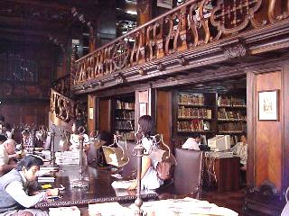 図書館があるのですが、時代を感じさせる造りの中で古い蔵書がぎっしりと詰まっており貴重な資料が多いのでしょう。閲覧者は多く混雑していました。過去に戻ったような錯覚を持ってみていましたが、良く見ると中に現在の象徴コンピュータが置いてありました。