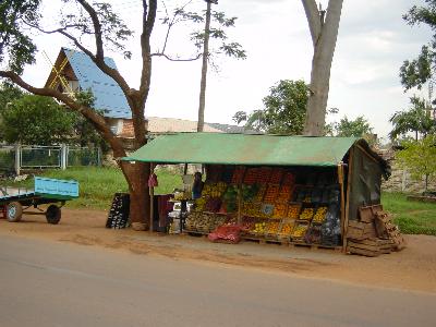 (写真:道路沿いにある果物店)
