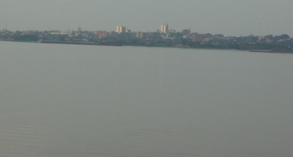 (写真:パラナ河:向こうはパラグアイ・エンカルナシオン市)