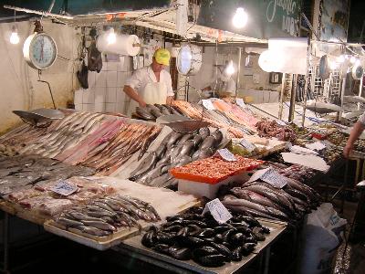 中央市場には青果物、海産物の他、沢山のレストランがあります。魚介類を食べるために市民・観光客が訪れるようです。