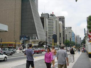 サンパウロのビジネス街としては何と言っても「パウリスタ通り」が有名で大きなビルが立ち並ぶ様は壮観です、銀行等が並び活気に満ちている通りです。総領事館を始め、日本の進出企業もここに支店を構えている企業が多いようで、住友銀行、東京三菱銀行等は単独で大きなビルを持っています。日本企業はサンパウロを南米の拠点としている事が多いのですが、経済の中心であるという理由ばかりでは無く日系人が多く、日本語が出来るスタッフが多うので言葉の面で有利である点があるようです。オフィスの中は日本語で用が足り、便利な反面、逆に現地のポルトガル語の習得に支障が生じるケースも中には中にはあるように聞いています。