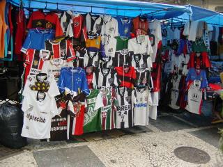 そして街でよく見かけるのはサッカーのユニフォーム売りです。人気チームのレプリカが所狭しと売られています。これなどお土産に如何でしょうか?