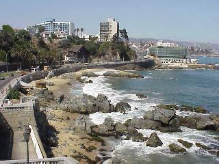 (写真:岩礁の海岸、ビーニャ市内)