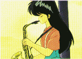 Madoka is alone in the music room, sadly playing her saxophone. Kyousuke is listening