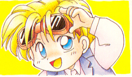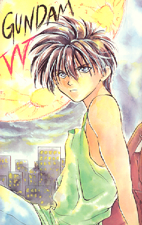 Here is a cool scan of Heero with the moon and the words "GUNDAM W" in the background: Heero and the moon