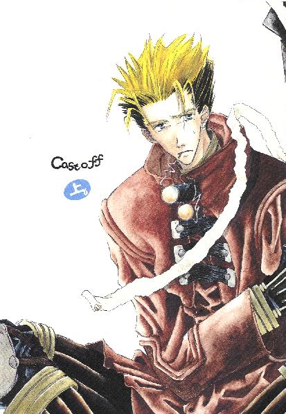 Cover of Castoff: This one has Vash sitting and smoking, looking all meloncholy. He needs some comfort...(preferably of the sexual variety ^_-)