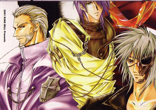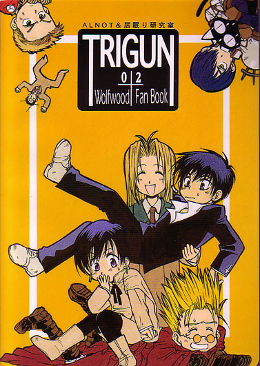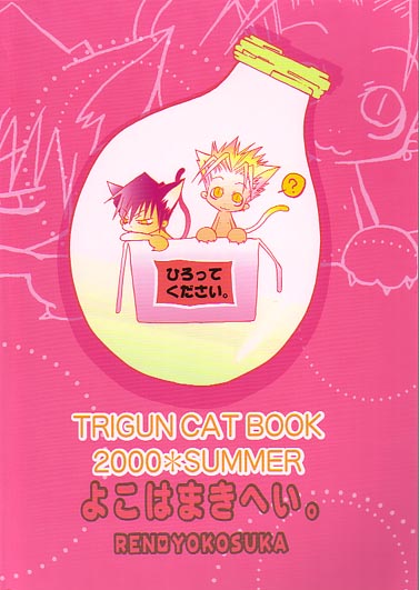 Back cover of some doujinshi (the filename says "jacob," but I'm not sure what the full title is....so much for naming files well enough so that I can tell what the original title was supposed to be :P): More super deformed fun with many of the main members of the Trigun cast (Legato sure seems to be paired with Kuroneko-sama a lot....)