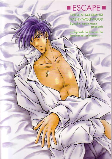 Front cover of Escape: Sexy open-shirted Wolfwood lying on the bed....he seems to be waiting for someone ^_^