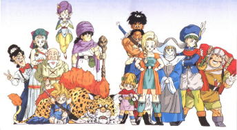 Hello and welcome to my Dragon Quest 5 shrine. This is about IMO, the greatest RPG that ever made and that never hit the US. (What a terrible injustice!) First, a little bit about Dragon Quest: Dragon Quest was first released for the Famicom in Japan, made by Enix. It was a huge success. It was eventally ported to the US Nintendo Entertainment System (NES) as Dragon Warrior. It even spawned great sequels as well. The first 3 was a trilogy series known as the "Roto Densetsu", or Legends Of Roto (we all know this at the Legends of Erdrick). The next 3 were a totally different trilogy, know as the "Tenku" series.(Tenku means Heaven) The 1st of the Tenku series (Dragon Quest 4) was released in the US as Dragon Warrior 4, and it was also the last Dragon Warrior game to ever hit the US, thus the whole Tenku trilogy never made it to the US, because of Enix of America shutting down before Dragon Quest 5 or 6 ever made the US shores. If they did, they'd be known as Dragon Warrior 5 & 6. Notice the pictures on this page look rather familiar? All of the character designs of Dragon Quest & Dragon Warrior games are all done by Akira Toriyama. He is more famous with his anime series, Dragon Ball Z.