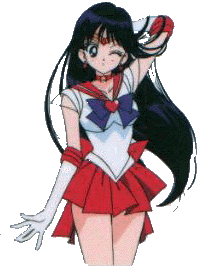 Rei: Hi! I'm Sailor Mars! I'm an Aries, like you couldn't tell. :) I live with my Grandpa at our temple. I'm one of the most responsible scouts in the team, though I admit that I can be a little stubborn. But stubborn's not all bad right? People think that since Serena and I fight all the time that we're not really that good for friends. But that's not really true, really Serena's my best friend. We just like to argue. Some of my attacks include Mars Fireballs Charge and Burning Mandala Strike. I love being the scout that controls fire as it relates to my training at the temple. Some people think that I'm strange because I'm psychic, but Serena understands me and thinks that my abilities are neat. With me at the temple live my grandpa and Chad. I know that all my friends are trying to hook me up with Chad, and he is sort of cute, but I guess we'll have to wait and see what the future brings.