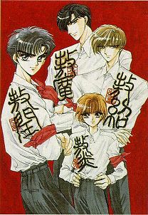 ![]() ![]() ![]() Soryuden, (also known as Soryuuden, Souryuden, Sohryuden, The Legend of the Dragon Kings, The Legend of the Four Kings etc.), is originally novel-based written by Tanaka Yoshiki and illustrated by CLAMP (up to volume 13 so far). It has also been turned into a 12-episodes anime by Toshiharu Murata. It is actually a story of the 4 brothers and their cousin. The 4 brothers were reincarnations of dragon kings (of the North, South, East & West seas) and their powers were not yet unleashed at this point in time, in modern Japan. However, soon after, many different groups of people were after them for their various selfish reasons. Some believe that drinking dragon's blood will evoke longevity; others feel that these 4 brothers can be powerful destructive weapons. Thus the chase and battle goes on between the brothers and the "evil" enemies. Of how each brothers' powers are unleashed one at a time, and of how they have to help extract their cousin Mitsui from their enemies' grasps... Here are some images from Soryuden as illustrated by CLAMP.