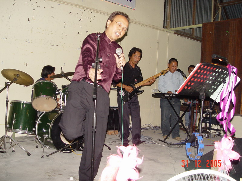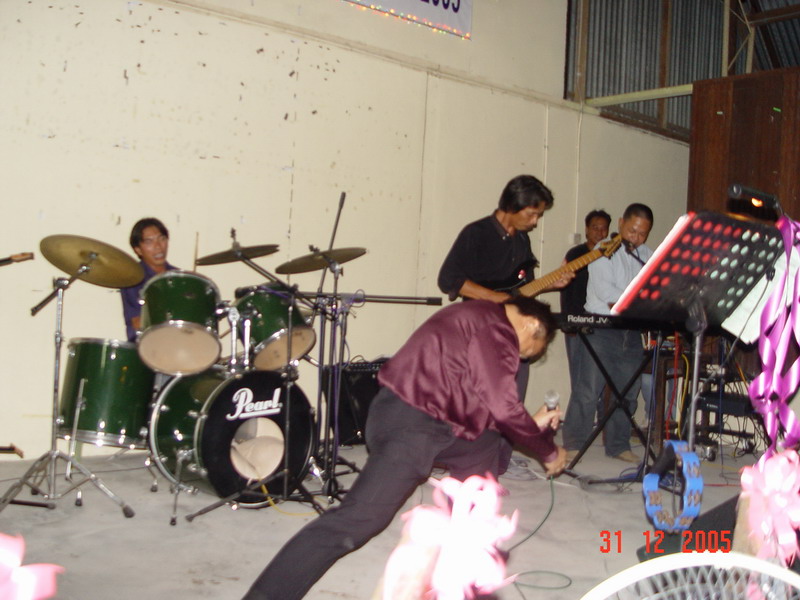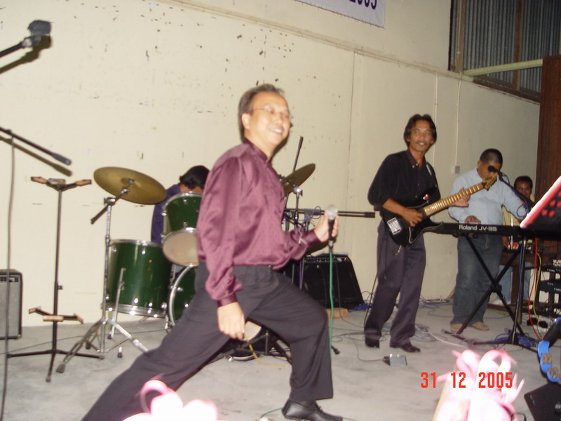 The Rocking Doctor. Dr. Christopher singing a few rock & roll numbers to the delightful audience. Dr. Christopher & his wife Invited guest. Council sec. & wife. William Nigor & Mr.M. Saweng. Audience on the floor.