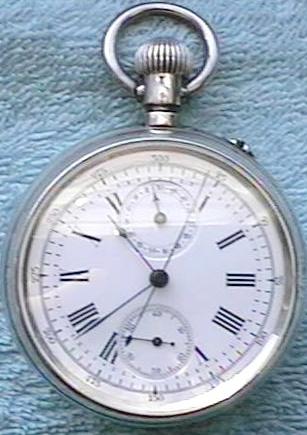 16 size Swiss made chronograph in a .800 silver case. The jewel count is not marked, but probably has 11-15 jewels. The movement is signed "Brevete S.D.G.G". Probably dates to the turn of the century.