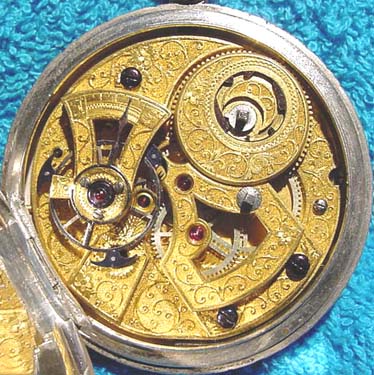 This is a really fantastic key wind pocket watch with a rare "chinese duplex" movement. It is probably Swiss made for the Chinese market. It is in a silver case and measures 2 1/4 inches in diameter. It has a center second hand. The nicest part about the watch, of course, is the intricately carved movement.