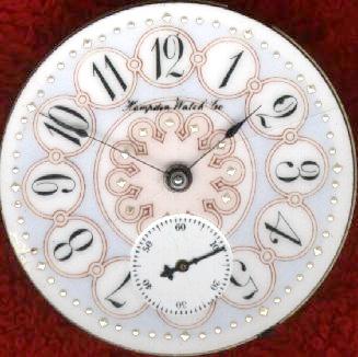 The nicest thing about it, however, is the stunning fancy glass enamel dial. Usually, dials like this are found on relatively low grade watches, so it's especially rare to find one on a high grade railroad watch! The serial number on this watch is 1027379, which dates it to about 1898. Although later railroad standards forbade hunter case watches, at this early date they could still be railroad approved.