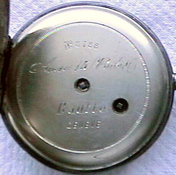 I picked this little gem up at a local antique shop for $85 [the original asking price was $110]. I bought it with an eye to reselling it on eBay for maybe $125-150, but decided to keep it instead. The watch is marked "Bautte GENEVE" on the dust cover. According to my watch book, there was a watchmaker named Jean-Francois Bautte who worked in geneva from 1800-1835. If this is the same Bautte, then this is a very old watch! The watch is really attractive. The gold hands have little pieces of highly polished steel embedded in them which reflect the light like small diamonds, and the case has a wonderful pattern engraved on the back. The watch case was rather blackened from years of oxidation, but when I applied a little polish it cleaned right up. Not only did it clean right up, I also discovered that the case and the bezel have copper accents all around, which give the watch a lovely two-tone effect. All in all it's a great little watch, and I think I'll hold onto it for now....