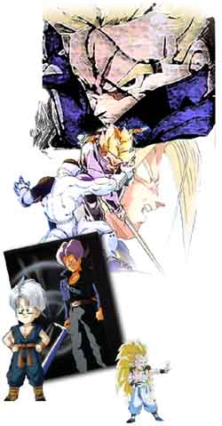 Future Trunks:He hits the scene at age 17 by traveling back in time. He does so with a bang by destroying both Freeza and his father. But he came with a grim tale of the future, a future where all the Dragon Ball Warriors were killed except for himself and in a future dominated by two powerful cyborgs #17 and #18. Trunks traveled back in time hoping to change the future by changing the fate of Son Goku. In his future, Son Goku died of a rare heart disease. He believed that Goku was pivitol to the events of the future, so he brought the medicine necessary to save his life. Even though his future could not be changed, he hoped that the "present" will not turn out like his future. In the end, he got more than what he had bargained for. Not only was he able to completely change the events, but he also, under the guidance of Goku and Vegeta, he became more poweful than he could imagine, enabling him to put right, his future. Chibi Trunks: Like Goten, he was able to achieve Super Saiyajin at a very young age. Due to the lack of available warriors, he performed a fusion with Goten into Gotenks to battle Majin Buu. Comic City Home | More Characters | Current Votes