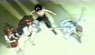 | Ooh! See how he wraps his arms around her to bring her away from danger... and even before Hinageshi and the others could. ^-^ |