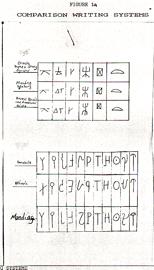 We were able to decipher the Oued Mertoutek inscription, and the Minoan Linear A, Harappan writing and the Olmec script because of the Vai script (Winters 1984a,1984b,1984c). Winters (1977,1979) discovered that the Vai syllabary of 200 characters matched all the signs in the syllabaries of Crete, Olmec America, Oracle Bone writing of China and the Harappan script (Winters 1979,1983b,1983c). And that due to the genetic linguistic unity of the people who made these signs, when you gave the signs in these diverse areas, the phonetic values of the Vai signs, but read them in the Dravidian or Manding language you could read the ancient literature of Crete and the Indus Valley (Winters 1985b). Thus the syllables which retain constant phonetic values can be used by different groups to write their own languages.