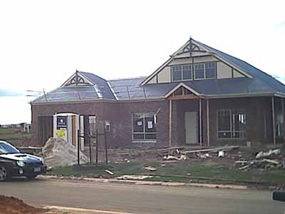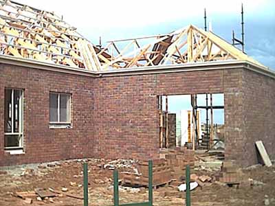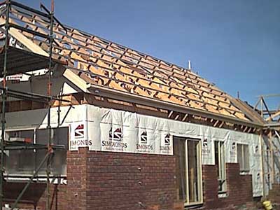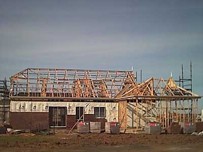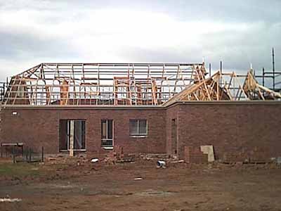 During this week (Wednesday) the roof was started and finished by the time we came to see the house on Saturday. This is what the place looks like now.