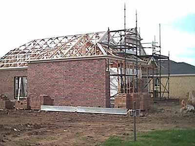 Our Bricklayer has made great progress on the house. In the ten days or so since we had been there to see the status of the house, he has sure been working hard to keep to schedule. The bricks are a lot more random and look a lot better, even without the acid-wash brushdown that has to occur at the end of the brick-laying process.