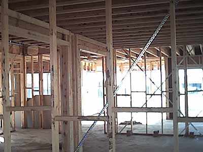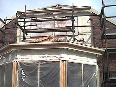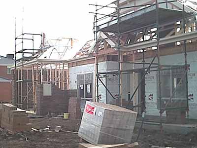 The whole western elevation is completed. You can see in the frame roof structure the outline for the upstairs rooms.