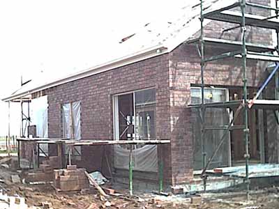 The northern elevation with all bricks completed up to the second storey. The window is to the third bedroom and below showing the meals and kitchen area.
