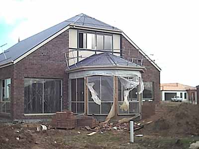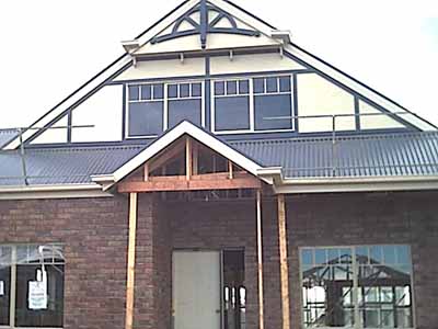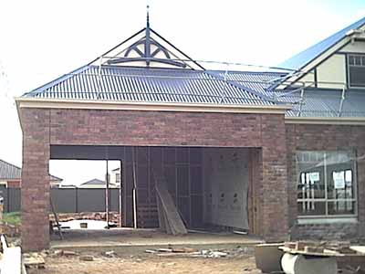 The bedroom window (left) still requires a feature colorbond shade to be put over the top, and there are still the cosmetic features like the arches that are supposed to go around the verandah and the final features over the unfinished peak at the front door.
