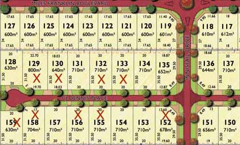 Here's an update of building activity in the street. Xs mark the spot for Lots with houses in various stages of construction in CJ Dennis Place.