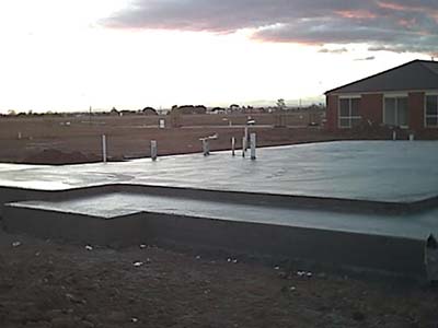 Looking north-west across the poured slab from the verandah and garage side.