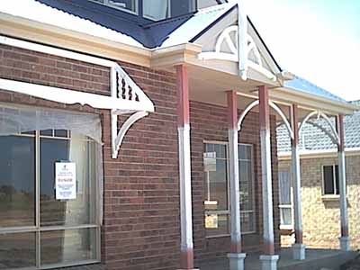 In particular from the outside we could see that a lot more work had gone into the feature fretwork. Work had commenced on the arch features and the central peak feature had also been put in. Over our bedroom window there was also signs of work, the fretwork for the window shade feature that is to have blue Colorbond material placed on.