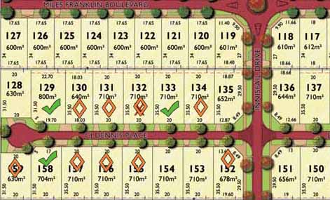This shows how the streetscape has changed over the last few months. The green ticks are houses that have people moved in already. The orange diamonds are houses either under construction or nearing completion. Blanks have no activity.