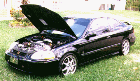 Okay, this is an exception, I actually put up a photo of a car that is other than a Honda or an Acura. I put it here because I thought that it looked cool, and that you'll enjoy it. Well, if you didn't know already, it is a Toyota Celica. It is a 1997 Celica GT-S with too many modifications to be listed.