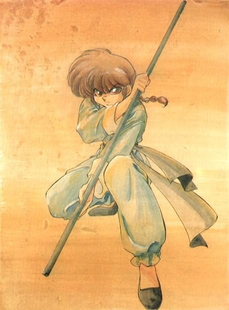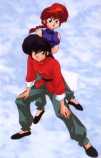 Ranma Saotome es el protagonista de la serie. Su padre -Genma- lo entreno desde muy pequeño para que dominara las artes marciales en estilo libre. Una parte de su entrenamiento fue ir a china nadando (aunque realmente fue porque no tenian dinero).