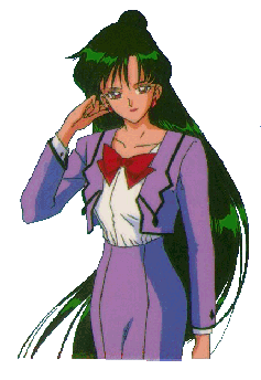 Meiou Setsuna. Outer Senshi. She's the mysterious soldier of time and revolution. A lot of the times she only appears when there's a crisis threatening the earth or the other sailor senshi. Towards the end of the series though, she seems to appear more frequently. Not much is known about Setsuna. She's the mysterious soldier, and she likes to keep it that way. She's good friends with Chibiusa and Haruka and Michiru. And in the Star series she helps raise Hotaru. Setsuna is much older than the rest of the senshi and she can feel twists in time. She is connected to Haruka and Michiru by... I guess you could call it a "mind-link" in the manga.
