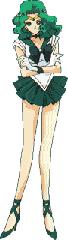 Sailor Neptune has an intimate relationship with Sailor Uranus. She can also play the violin and she has a mirror as a weapon. She is the most calm of the scouts. All of her powers have to do with water. |