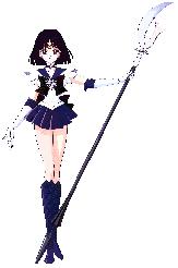 Sailor Saturn is the loner of the group. She was always a loner and never had a lot of friends. Most of her powers have to do with death. She is very quiet and shy. She is also Professor Tomoe's daughter, and was once Mistress 9. Sailor Saturn also has the power to heal. She had this power even before she was a scout. She is the weakest of the scouts because her body is weak as an exchanger for her ability to heal. She carries around a staff that is extremely strong and powerful. |
