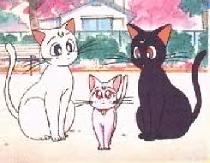 Luna and Artemis are the guardians of the sailor scouts. Luna is Serena's cat and Artemis is Mina's cat. Diana is their daughter. All of them are actually humans. |