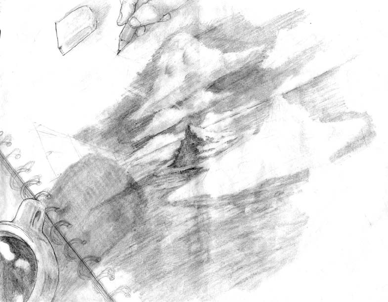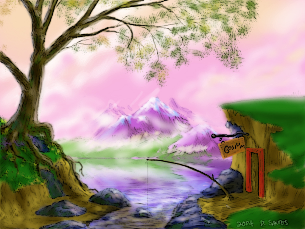 Slightly inspired by Lord of the Rings and that landscape-scenery-in-oils painter guy on TV ("...and add a little tree here..."), this piece was done entirely in photoshop using my newly acquired 5" x 4" AceCat Flair graphics tablet.