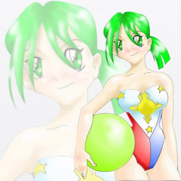 My first digitally colored drawing. Umm.. as for the Philippine flag as her swimsuit...