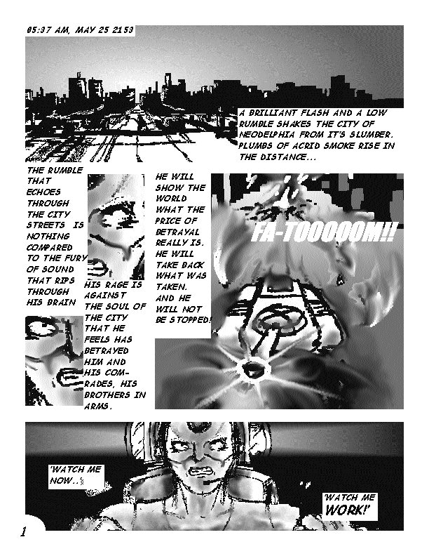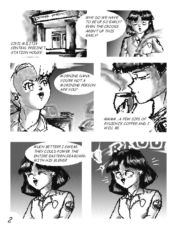 I've been reworking the character design and also the program in which the origianl art is done in. The following 2 shots are color, but I doubt I'll be doing the manga in color. Maybe, but I doubt it. Lotsa more work, and since I'm just one guy...well you get the idea. And yes, the art is rough, but as I said, I'm one guy. Here are some promo sketches of the main characters, Verity Dirac and Dana Ellison: