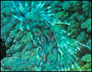 the night. It has a half transparent body with peculiar patterns. It wanders around the forest with blue light radiating from its body.