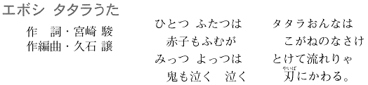 Tatara Fumu Onnatachi - Eboshi Tatara Uta "Women who push foot bellows - the Eboshi Tatara song" Music by Joe Hisaishi Japanese