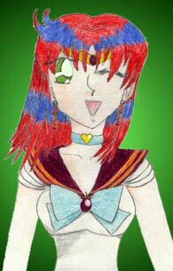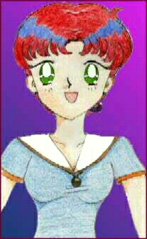 Hello! My name is Hinode Shibono, and this is my web page. I live on the same street as Usagi and Chibiusa (while she is in the 20th century), but I go to the same private school as Rei. I have red hair with blue highlights; kinda odd, but that's okay! I also have green eyes. I am adopted and have never met my real parents or know if they are alive. I don't mind though. I am happy with my family. I get along with Hotaru pretty well too, since her mother is gone as well.