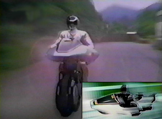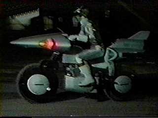 Mega Silver rides the Auto Slider, a hover-board that operates like the Megarangers' Cyber Sliders, but can also transform into a Bike (motorcycle) Mode. While in Bike Mode, the Auto Slider can shoot fire energy beams ("Slider Beam") from its fairing against the enemies.