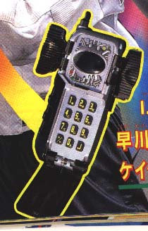 . At first he could only be Megasilver for only 2&1/2 minutes before he return back to his regular civilian form. He eliminated that time limit problem. Now, he changes using his cellular phone, the Keitaizer, by pressing "M E G A" on it, and saying "Install!"